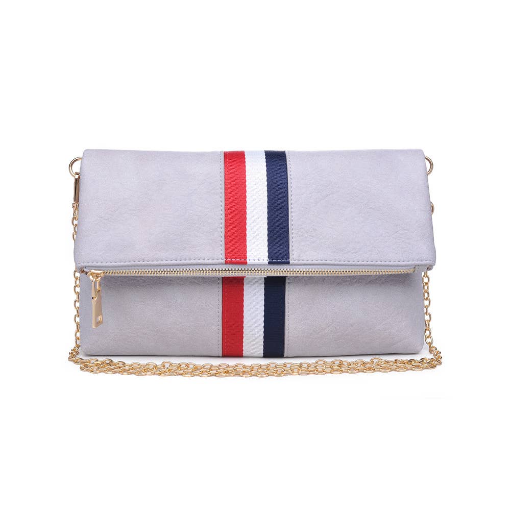 *Exterior Details: Center Stripe Folderover Clutch With Removable Chain Strap