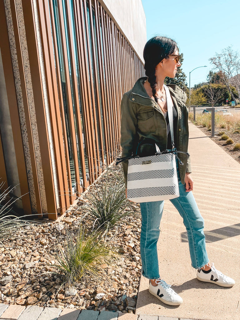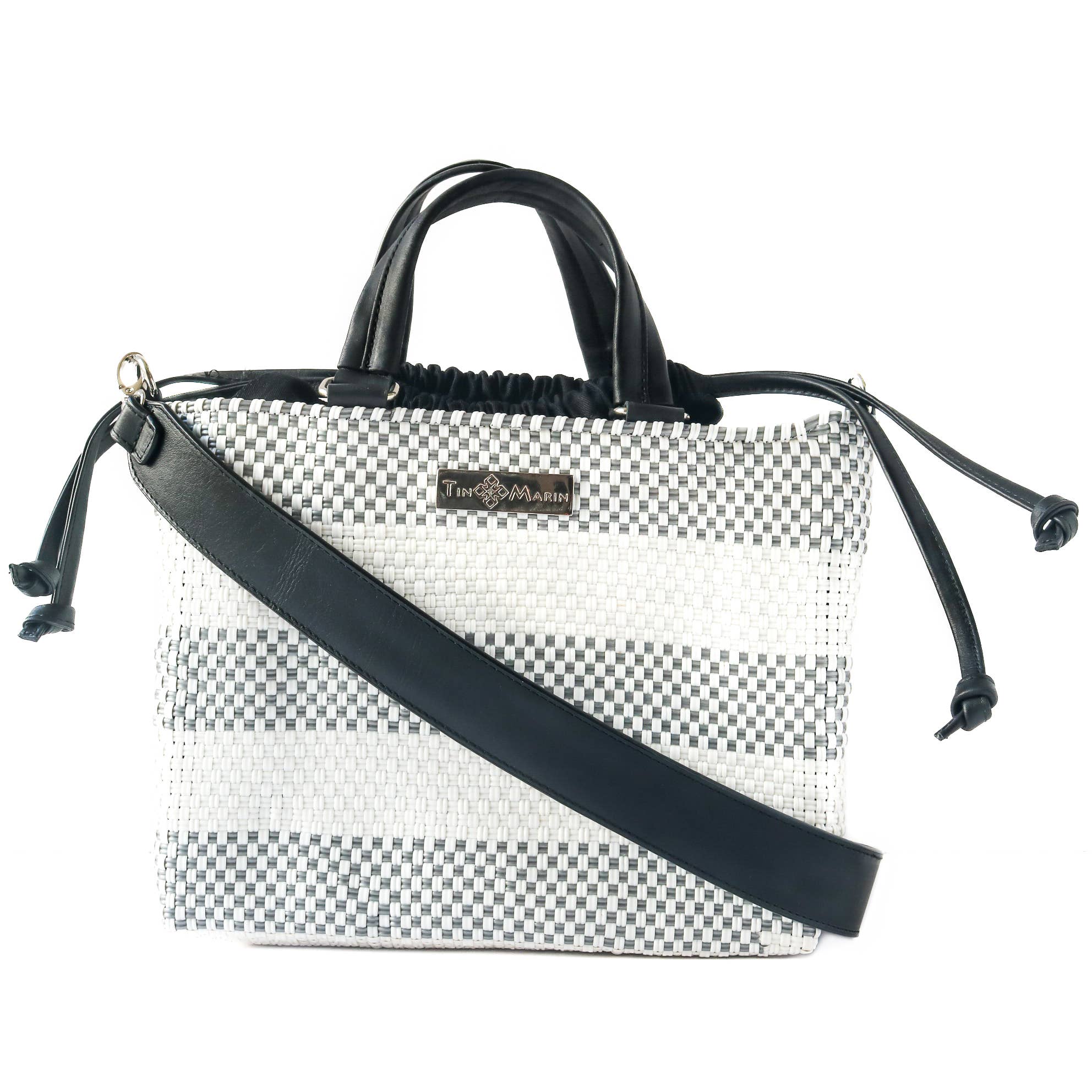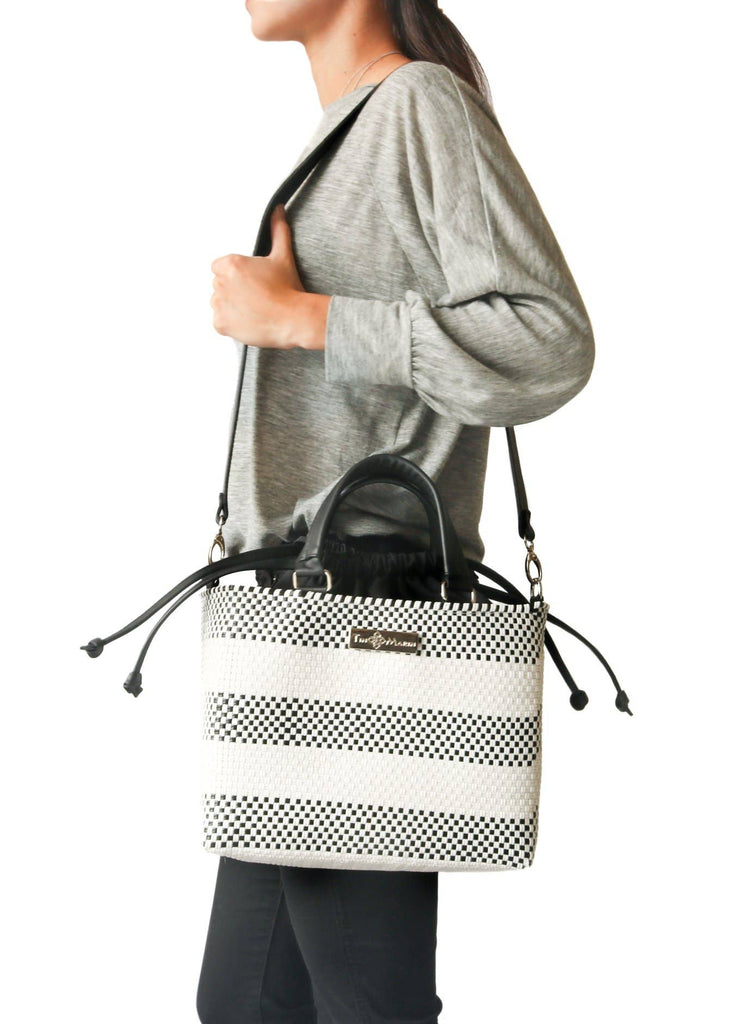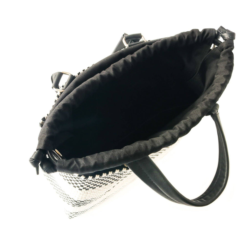 Eco-Friendly Design: Handmade in Mexico with 100% recycled plastic, blending sustainability and style. Spacious Interior: Fits an iPad/tablet, notebook, water bottle, wallet, keys, and more—ideal for your daily essentials. Secure Closure: Drawstring design keeps your belongings safe while adding a touch of sophistication.