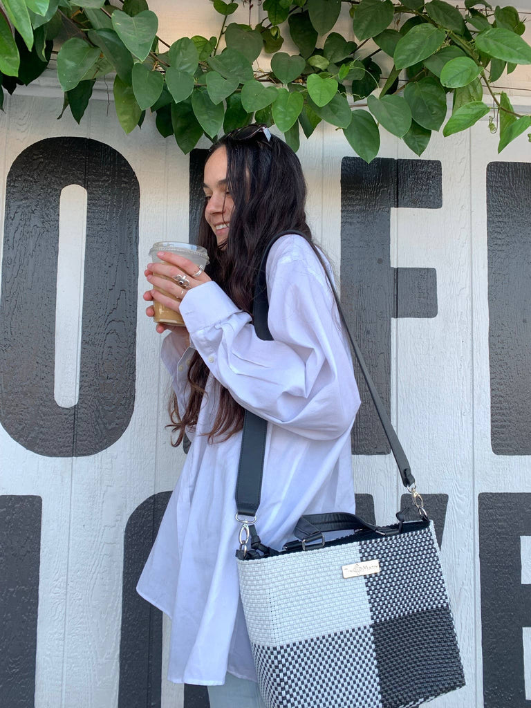 Eco-Friendly Design: Handmade in Mexico with 100% recycled plastic, blending sustainability and style. Spacious Interior: Fits an iPad/tablet, notebook, water bottle, wallet, keys, and more—ideal for your daily essentials. Secure Closure: Drawstring design keeps your belongings safe while adding a touch of sophistication.