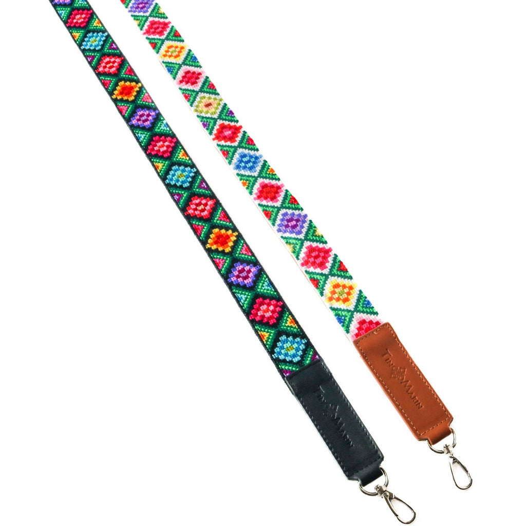 Already a proud owner of a Tin Marin bag? You can now upgrade or customize your favorite bag to suit your mood and occasion with our woven bag straps in different colors. Made by the Tzeltal community, a group of Maya artisan women in Chiapas, Mexico, every strap is individually made and takes one month to finish a piece. Made of a quadrille cloth with thread using double cross-stitch embroidery and featuring genuine leather lining and finish, every strap is unique and distinctive. Adding a pop of color to your bag has never been this effortless! With its convenient clips, it's super easy to swap in and out, match it with your outfit, your mood, your style.