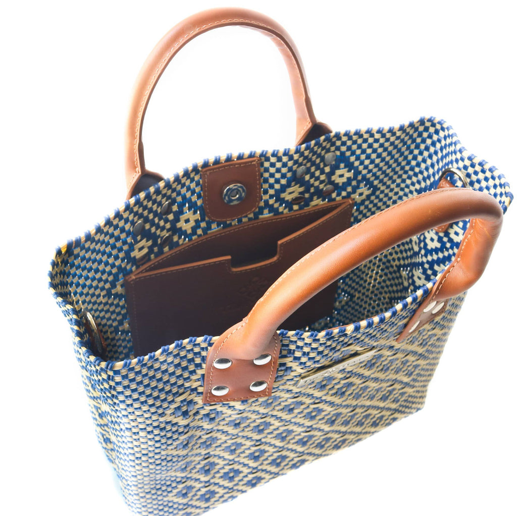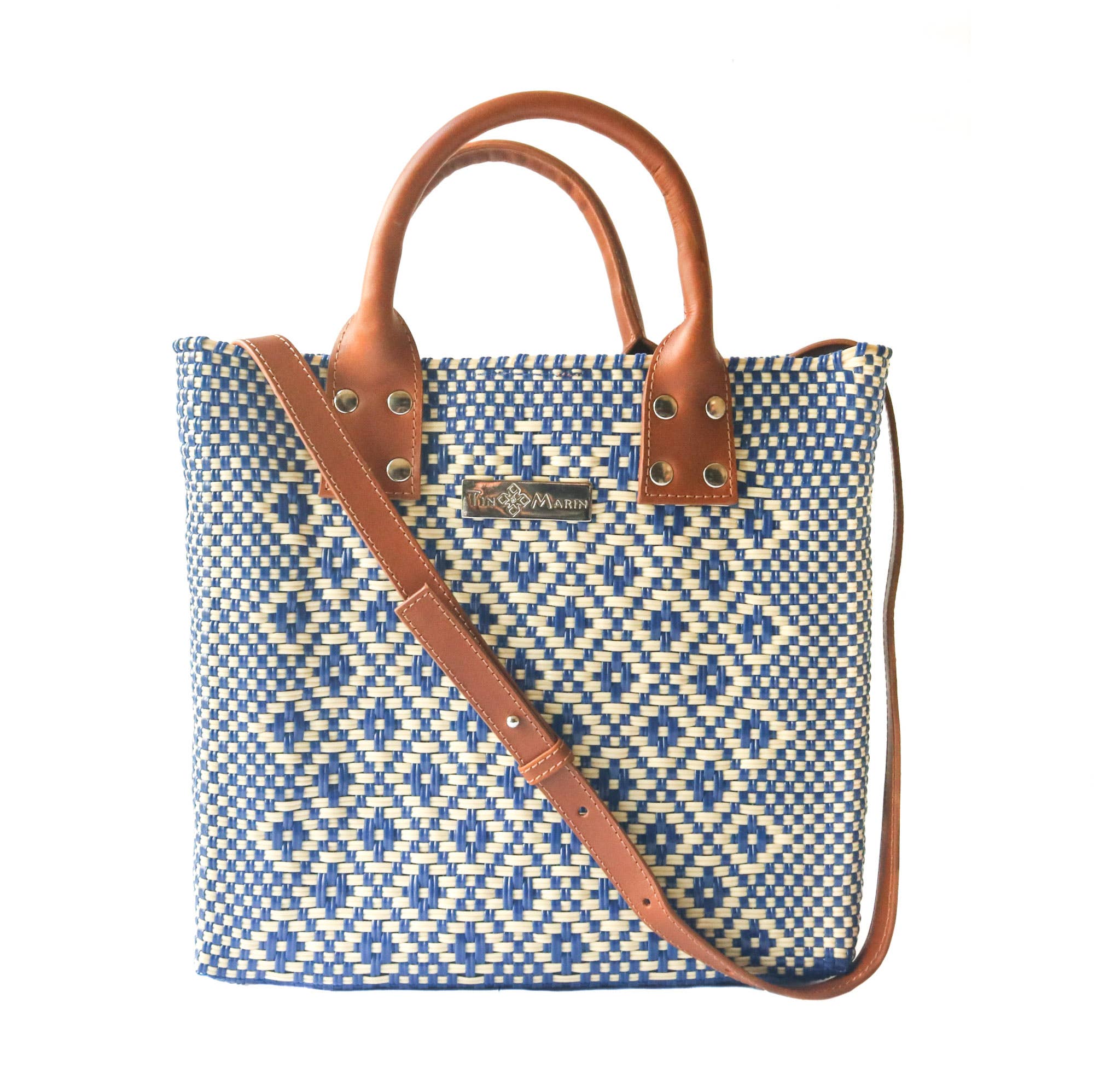 Features: Eco-Friendly Craftsmanship: Handmade in Mexico with recycled plastic and leather, blending sustainability with artisanal quality. Spacious Design: fits a 13” laptop, iPad/tablet, notebook, water bottle, wallet, keys, and more.