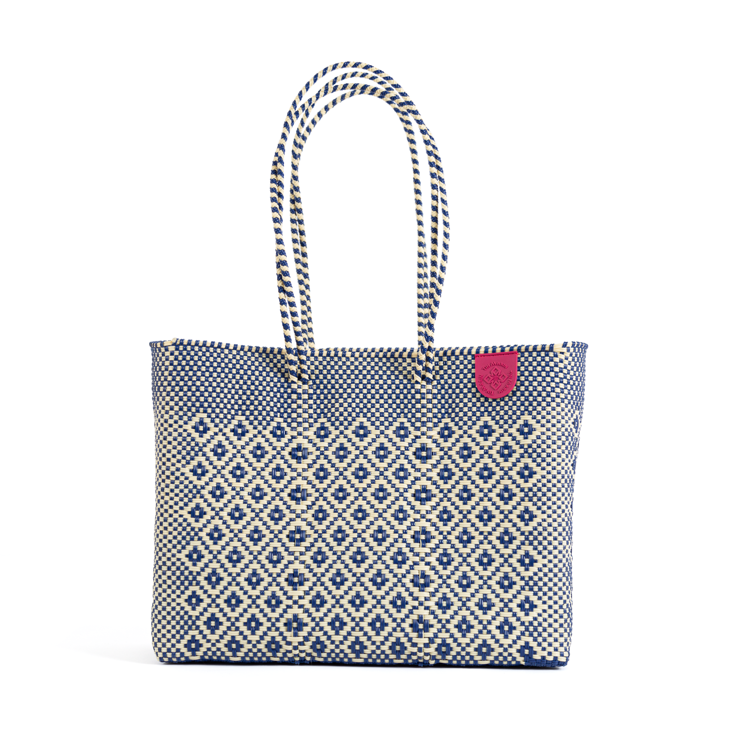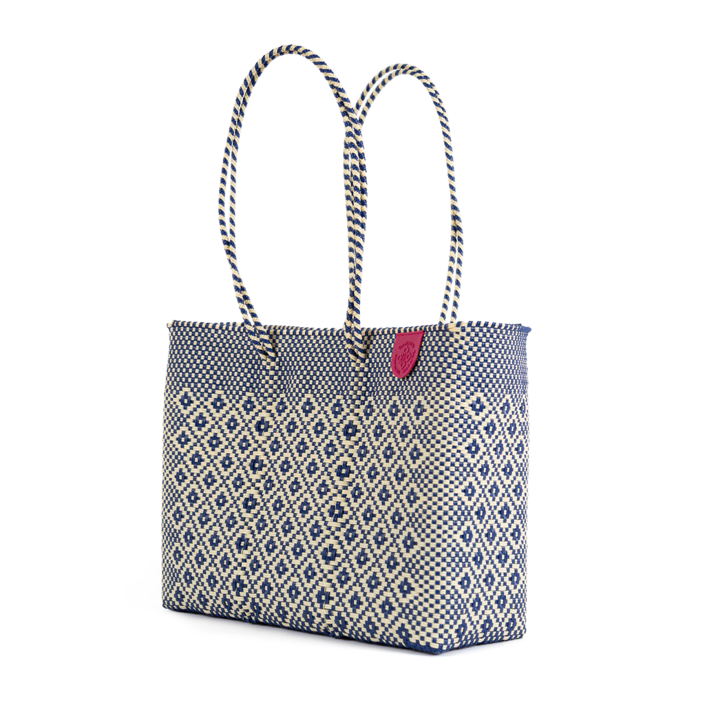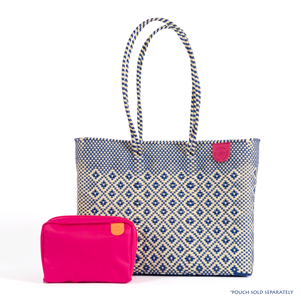 The Woven Super Totes are designed to carry all your beach-day must-haves with ease and style. Handmade by artisans in Mexico, this water-resistant and flexible tote combines functionality and charm for every occasion. Features: Eco-Friendly Craftsmanship: Made with 100% recycled plastic, supporting sustainability and artisanal traditions. Spacious Interior: Perfect for packing towels, books, sunglasses, snacks, and plenty of sunscreen—your ideal beach or travel companion. Water-Resistant & Durable: Flexible material ensures long-lasting use for all your adventures. Lightweight and easy to carry wherever you go. Versatile Style: Great for beach vacations, picnics, farmer's markets, gym, and beyond. Customization Options: Enhance its functionality with a Checs Nylon Pouch. Every bag takes 20-40 hours to create by our skilled artisans, supporting over 200 artisans while celebrating the beauty of sustainable.