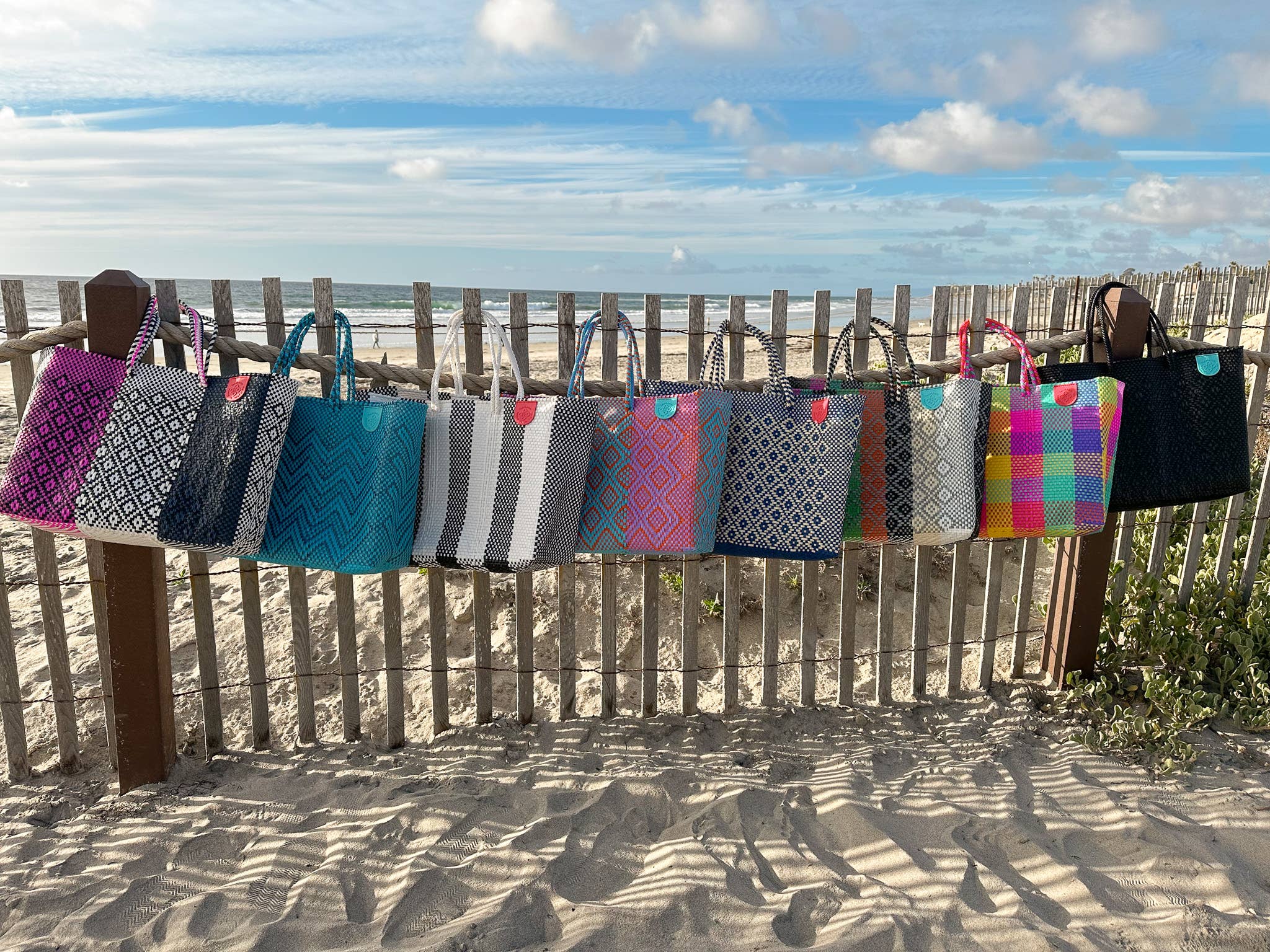 The Woven Super Totes are designed to carry all your beach-day must-haves with ease and style. Handmade by artisans in Mexico, this water-resistant and flexible tote combines functionality and charm for every occasion.