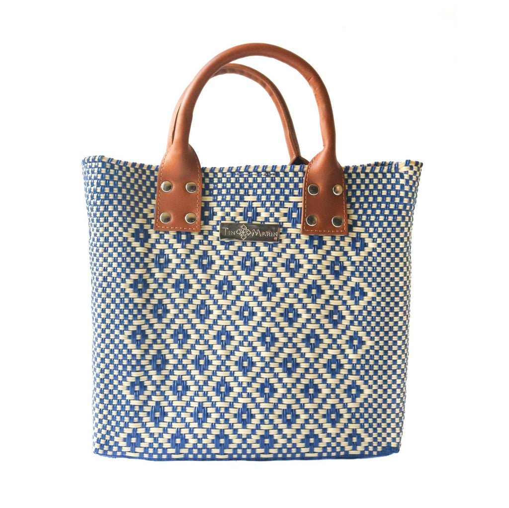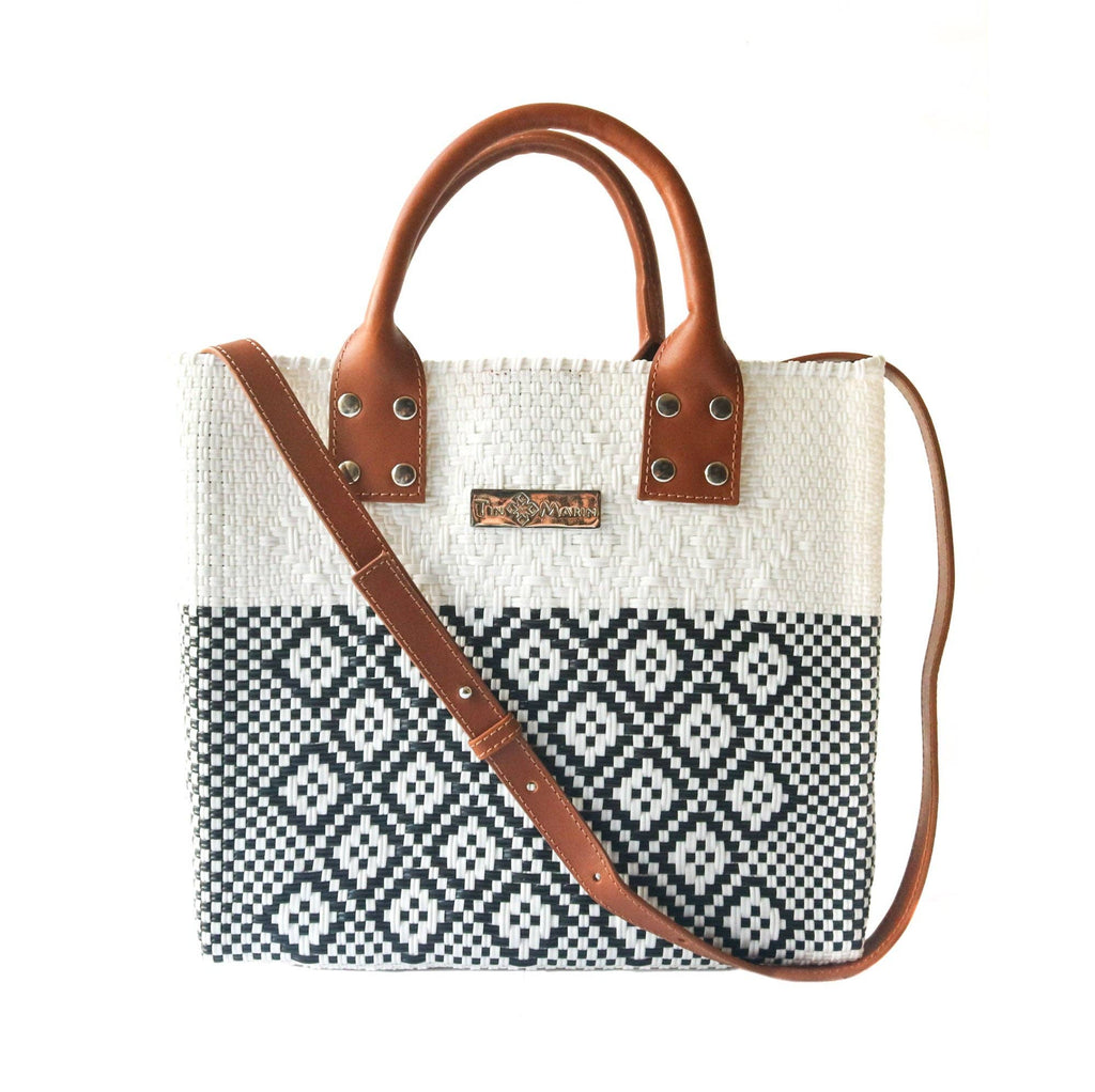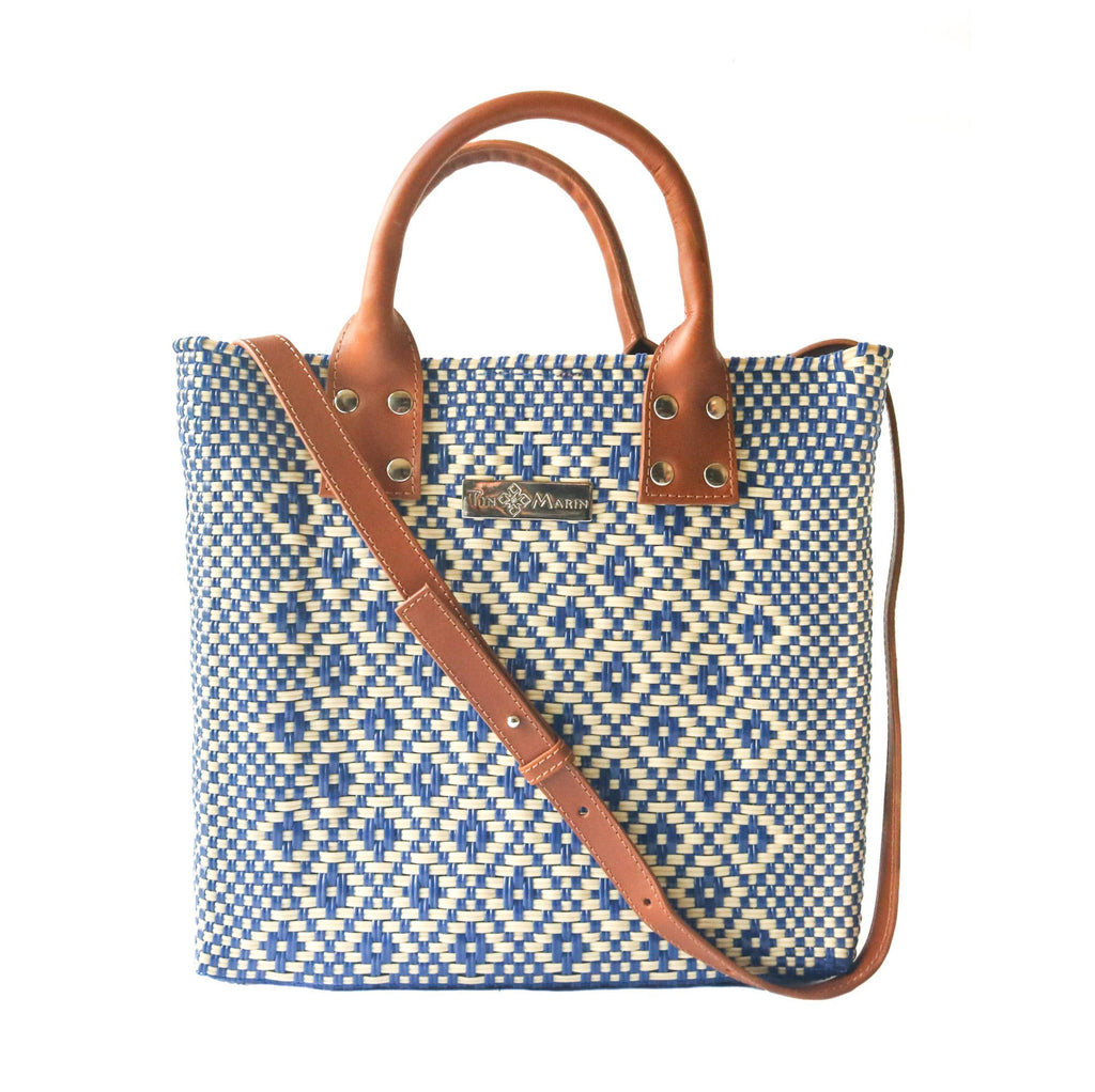 Mixte Large Woven Plastic Crossbody Bag - Tan Leather