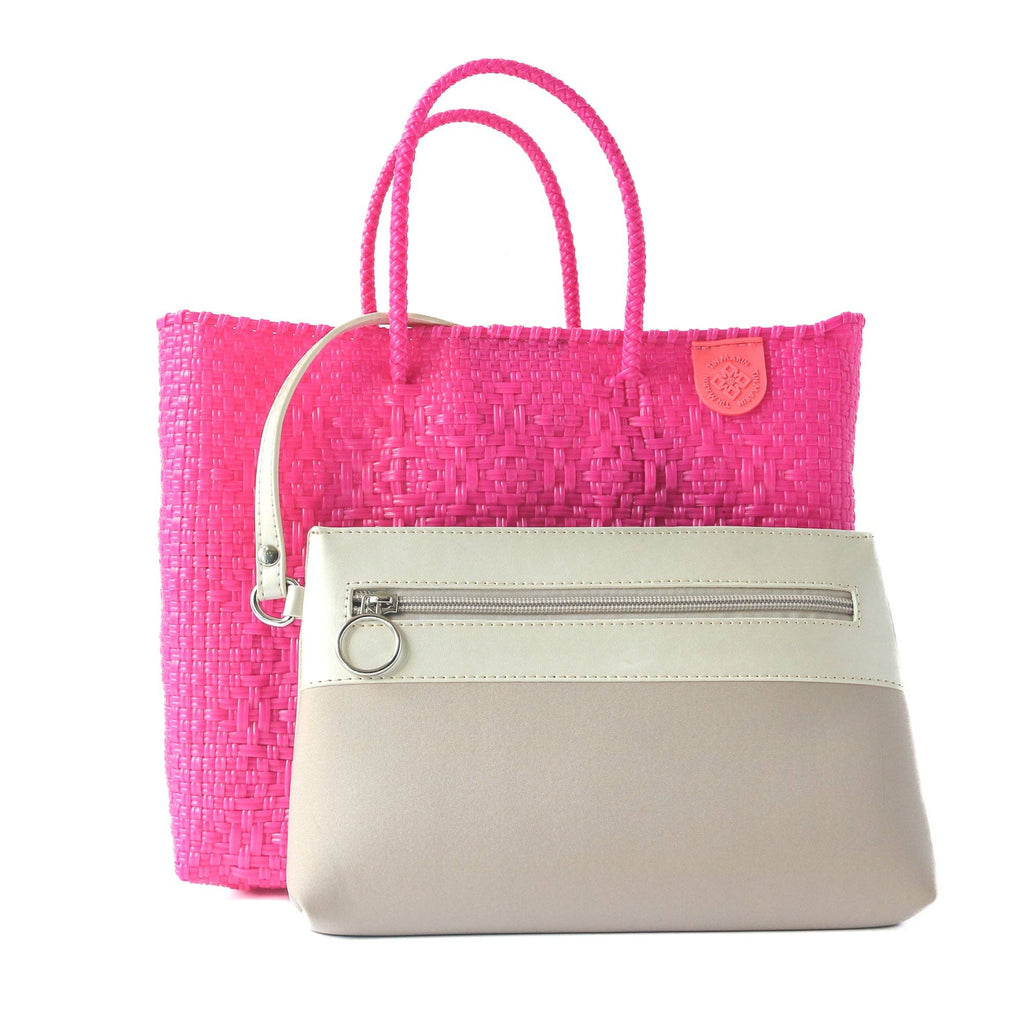 Bright Pink HydroBag® Handle™ with Pink and Green Striped Strap