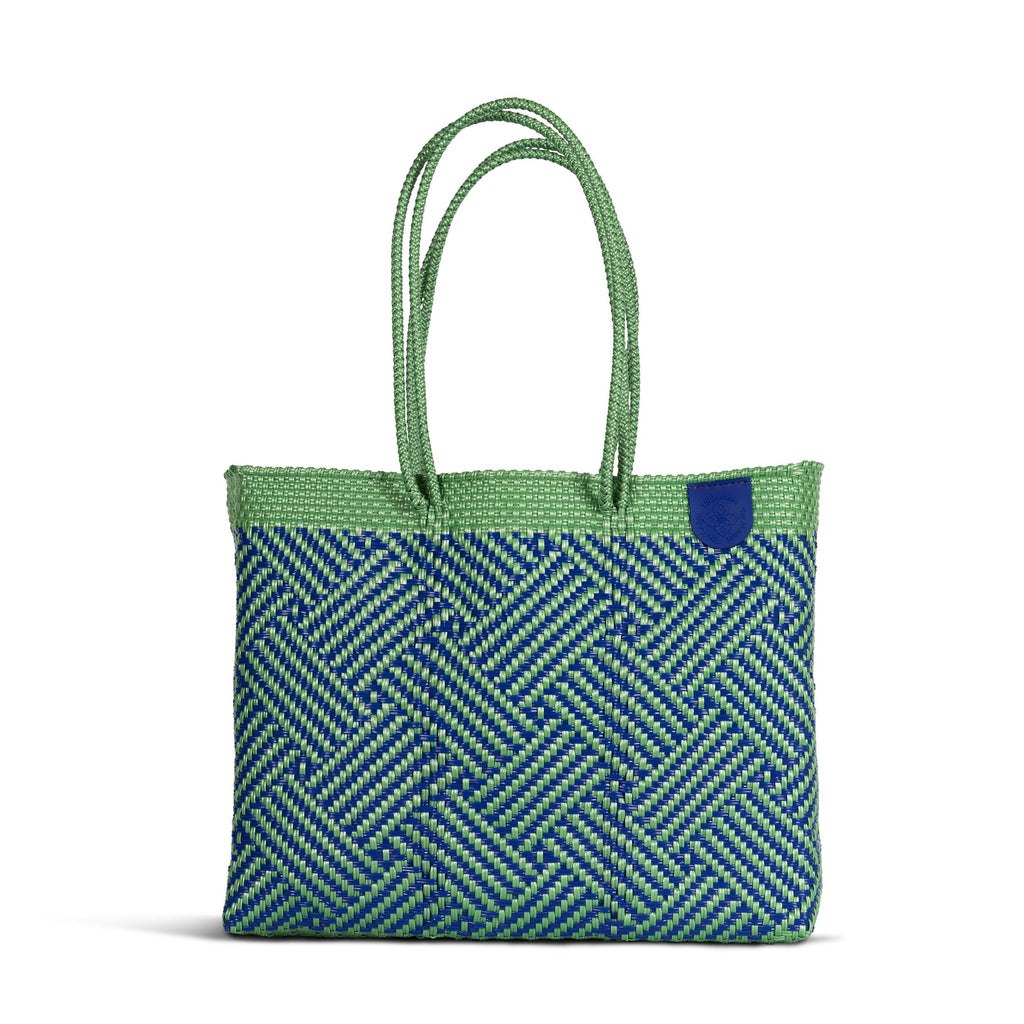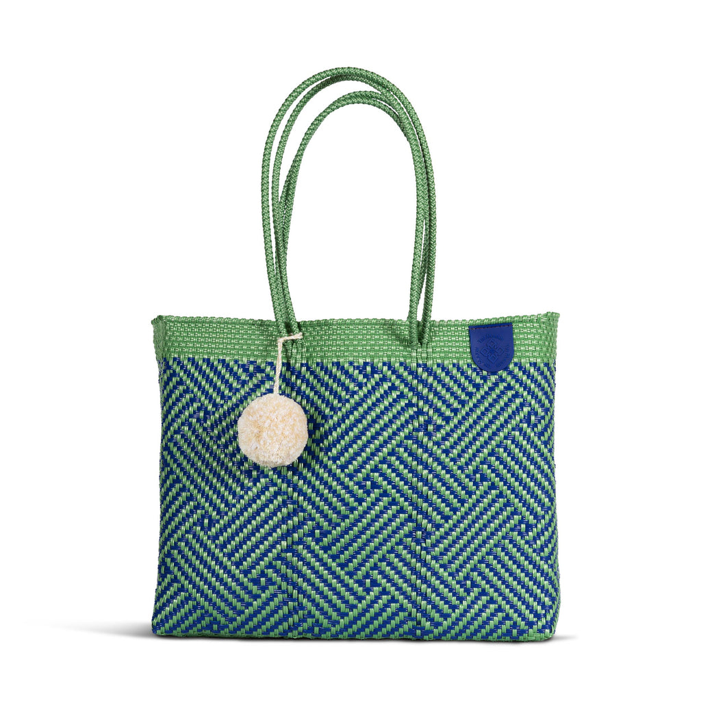 Mai Woven Bag Strap - Blue & Pink with Tan Leather