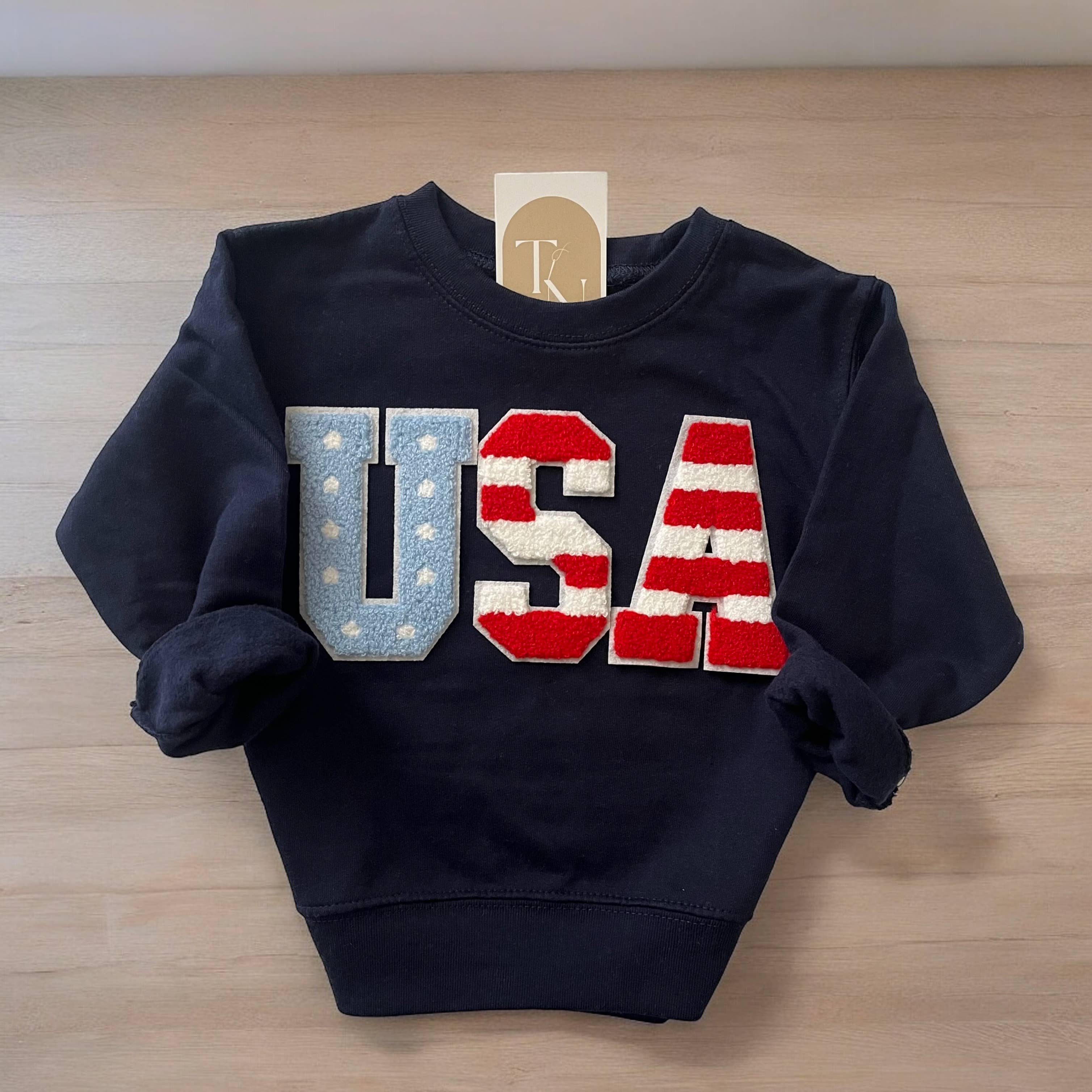 Let your little one show off their red, white, and cute 🇺🇸 This super soft USA Flag Crewneck Sweatshirt is cozy, comfy, and perfect for summer adventures—whether it's parades, picnics, or fireworks at the lake! ✨ Runs true to size, or size up for that extra snuggly, oversized fit!