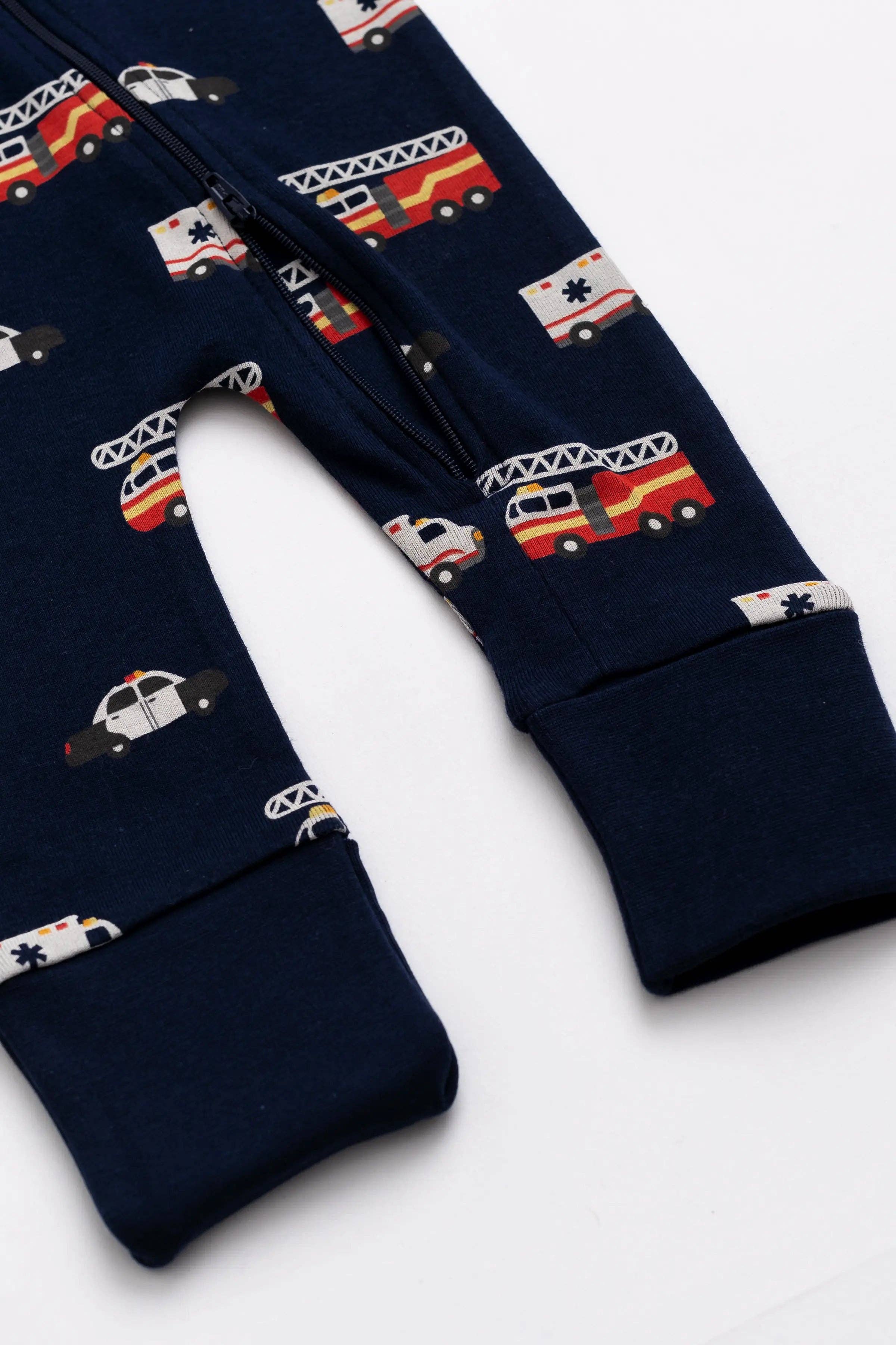 Our one-piece baby pajamas are crafted from our signature 100% organic cotton that’s “feel this” soft and free from harsh chemicals. Your baby will spend almost half their early years snoozing, so it’s a good feeling knowing they’re wrapped in safe, natural fabrics designed to support deep, cozy rest. Featuring a convenient double zipper for easy changes, this adorable essential makes diaper duty a breeze while keeping little ones snug and happy. With soft, breathable fabric, and playful prints, it’s the perfect go-to for both sleep and play!. * 100% organic cotton * one-piece long sleeves + pants * easy on and off asymmetrical zipper from front neck to the left leg * convertible fold over feet * lead, phthalate, and flame-retardant free * GOTS certified; the leading environmental standard for organic textiles * machine wash; tumble dry low * wear snug fitting; not flame resistant