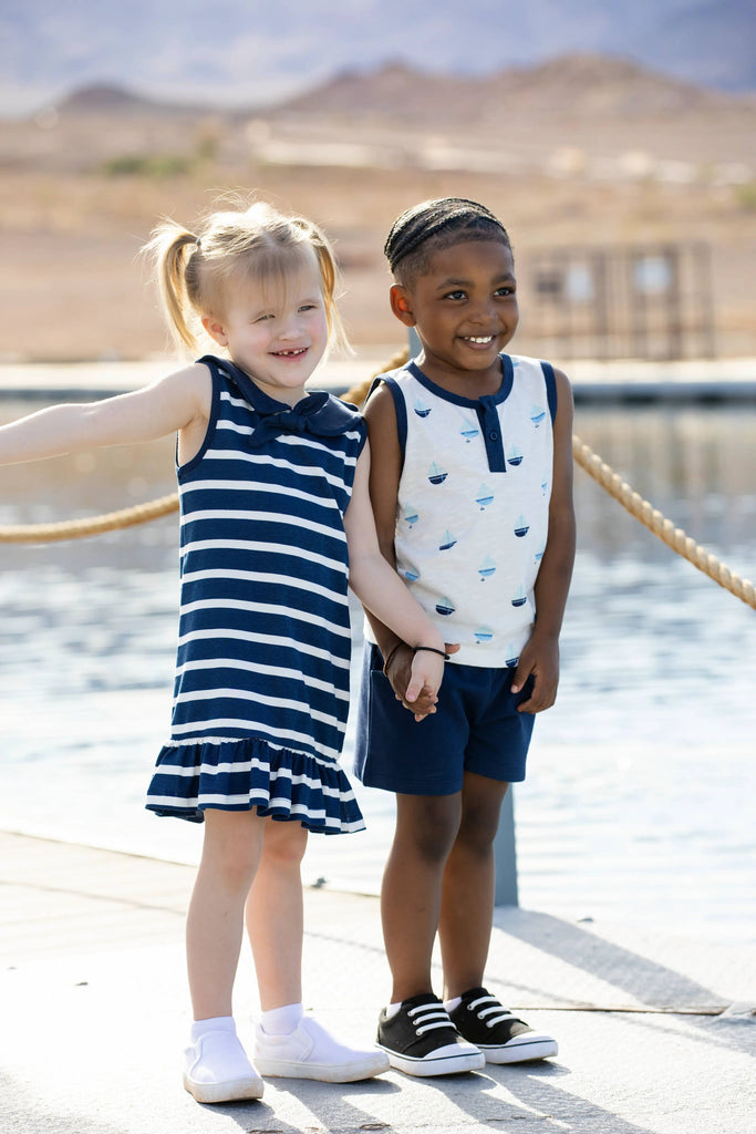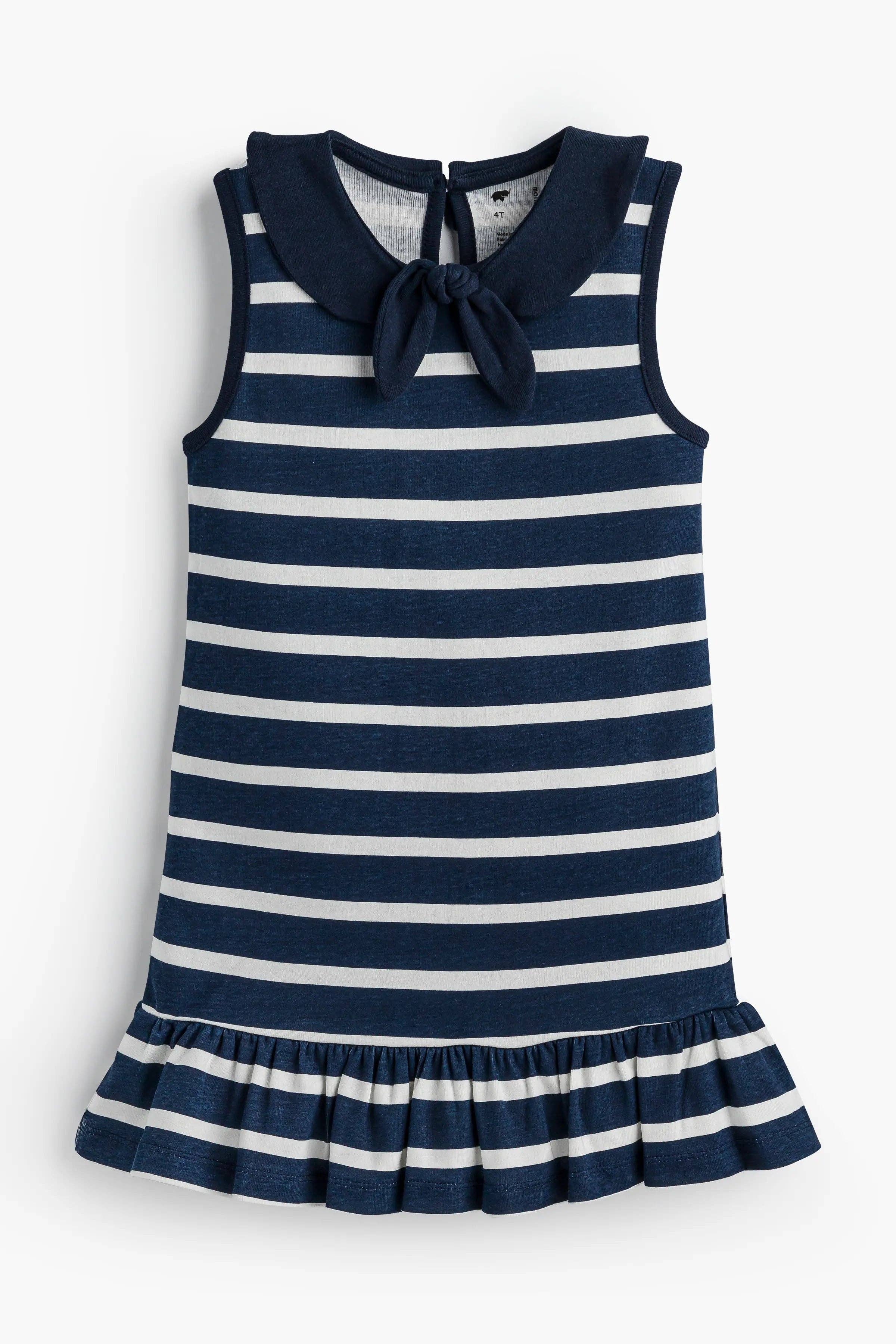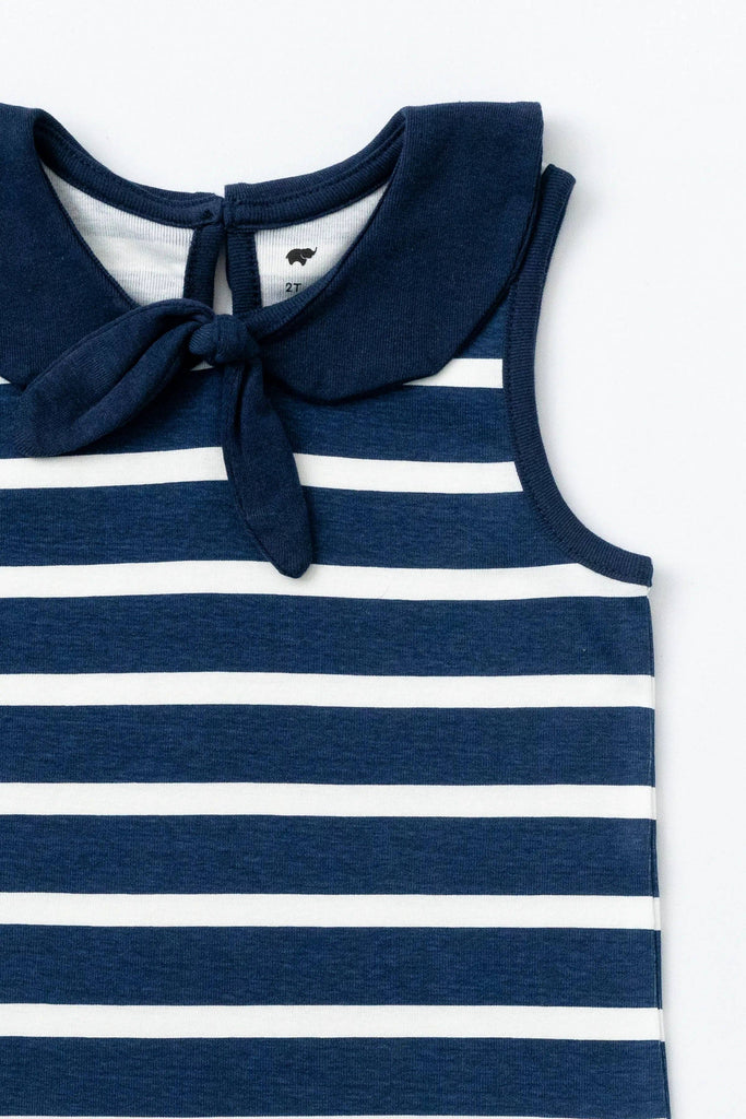 Crafted from 100% organic cotton, this charming dress features a classic sailor collar and a playful drop waistline that effortlessly blends style and ease. Parents can rest assured knowing that our dress is GOTS certified, meeting the highest environmental standards for organic textiles, and is free from harmful substances like lead, phthalates, and flame retardants. Plus, it's machine washable and tumble dry friendly, making it as practical as it is adorable.