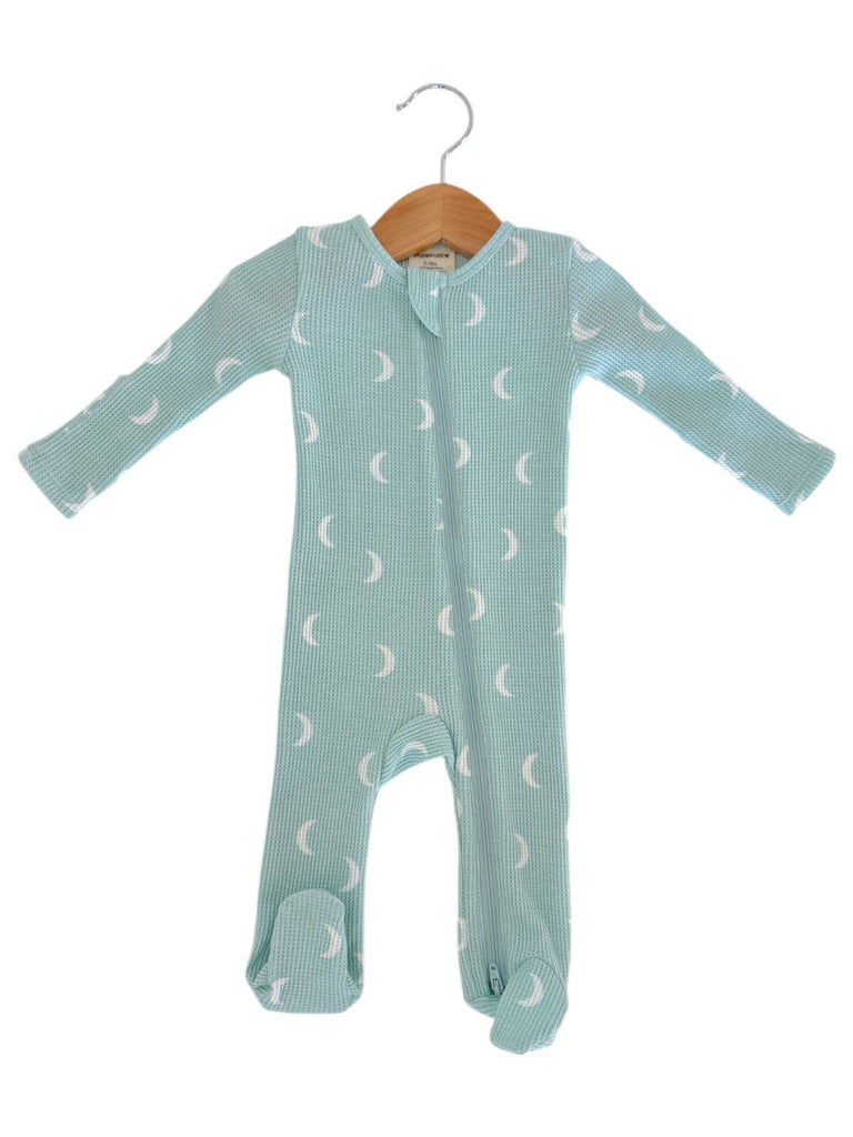 Organic Waffle Ruffle Zip Footie- Pink Candy Cane