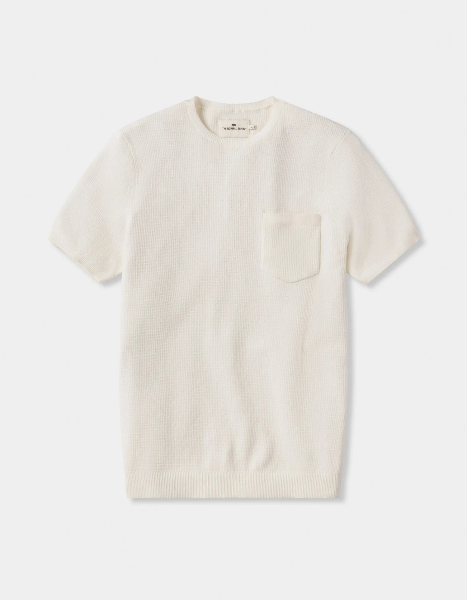 A refined twist on a timeless essential. Knit from ultra-lightweight cotton in a classic waffle stitch, this tee is breathable, soft, and built for all-day comfort. The textured feel adds subtle dimension, while the chest pocket nods to vintage styling. Easy to wear and effortlessly cool—this is your go-to for laid-back days with a touch of polish.