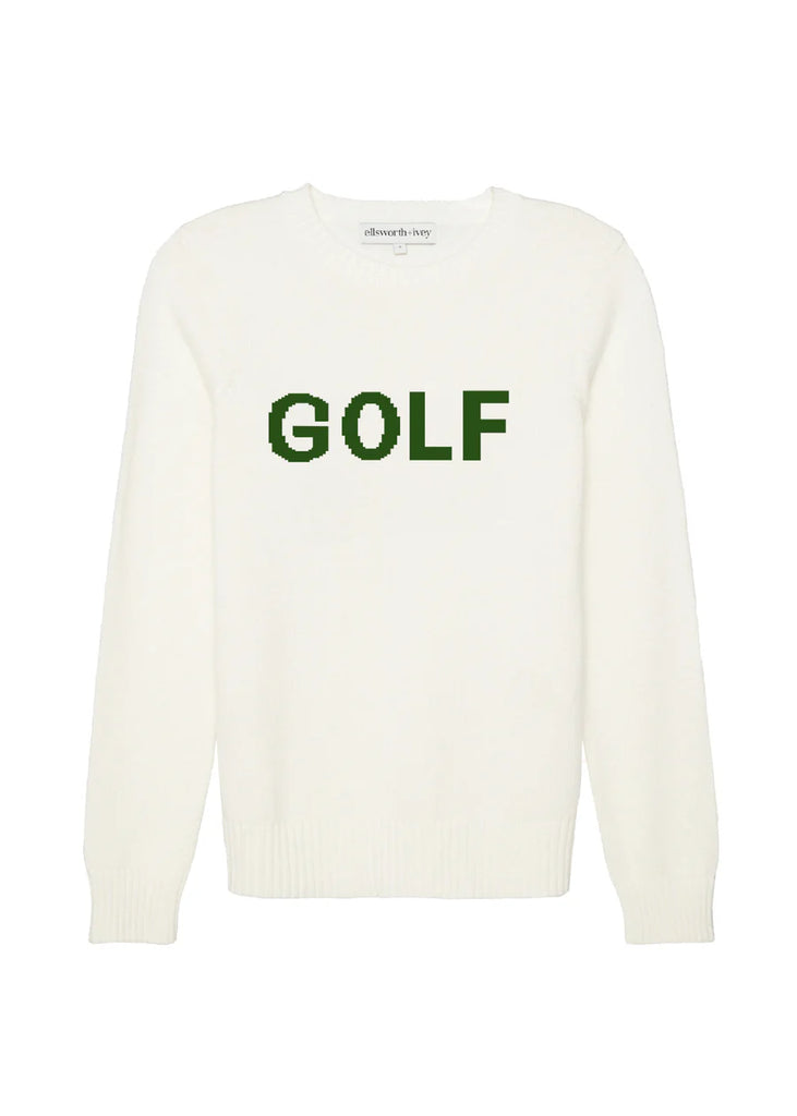 Golf Classic Crewneck Sweater - Ivory with Forest Green
