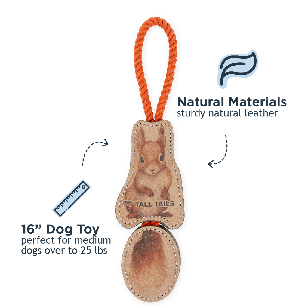 Natural Leather Jointed Squirrel Tug Dog Toy