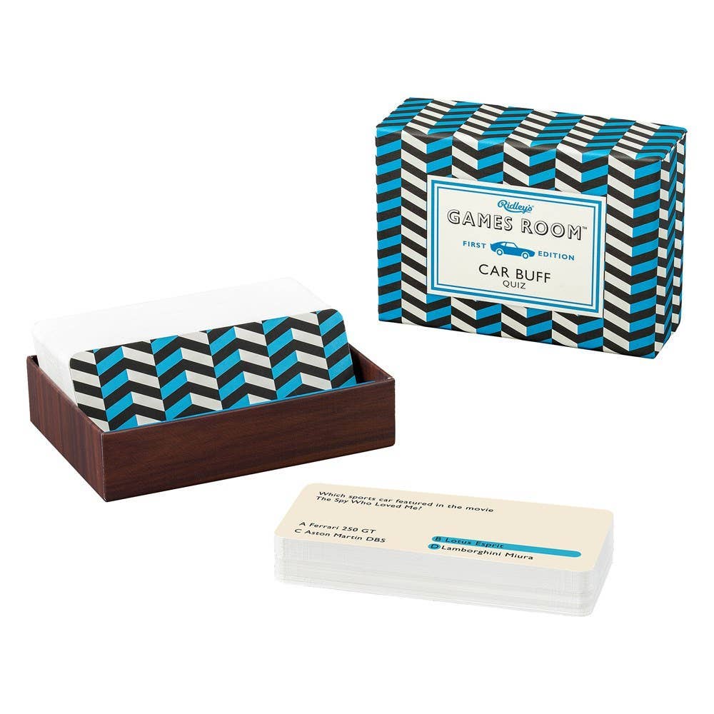 Rev your engines and let the quiz begin! Put your knowledge of all things car to the test with this Car Buff Trivia from Games Room. Wow your friends with your wisdom and answer multiple choice questions like "What car did The Dukes of Hazzard drive in the 1980s TV series?" With 140 question cards, it's time to prepare yourself for a wild ride! Packaged in a stylish geometric print box. Full instructions included.