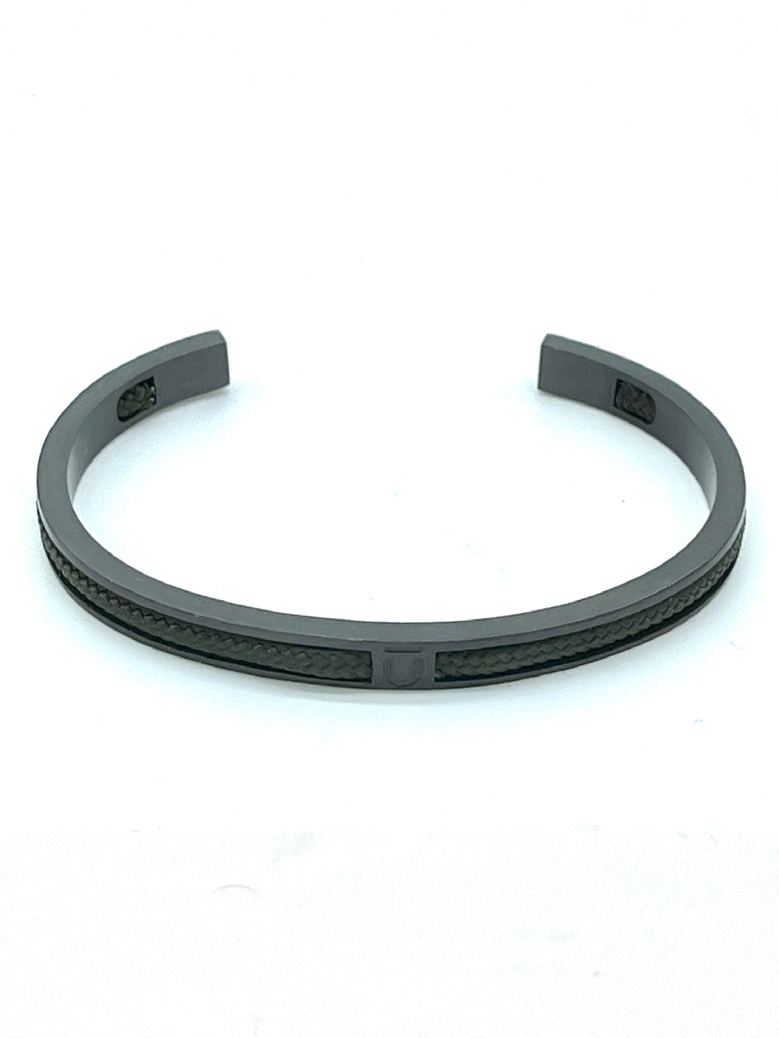 Part of our curated line of handcrafted European bracelets, this piece combines durability and elegance. The foundation is a premium adjustable metal cuff, accented with an olive marine-grade cord for a refined yet coastal look. Each bracelet embodies timeless design, meticulous craftsmanship, and effortless sophistication.