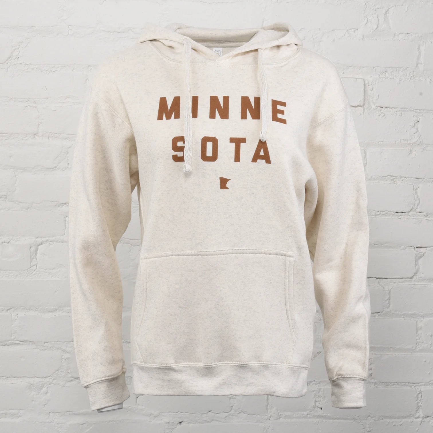 Stay cozy and embrace your Minnesota pride with our Unisex Minnetrista Hoodie. The natural color pairs perfectly with the brown "minne sota" graphic. Don't forget, we also have a matching version for the little ones!