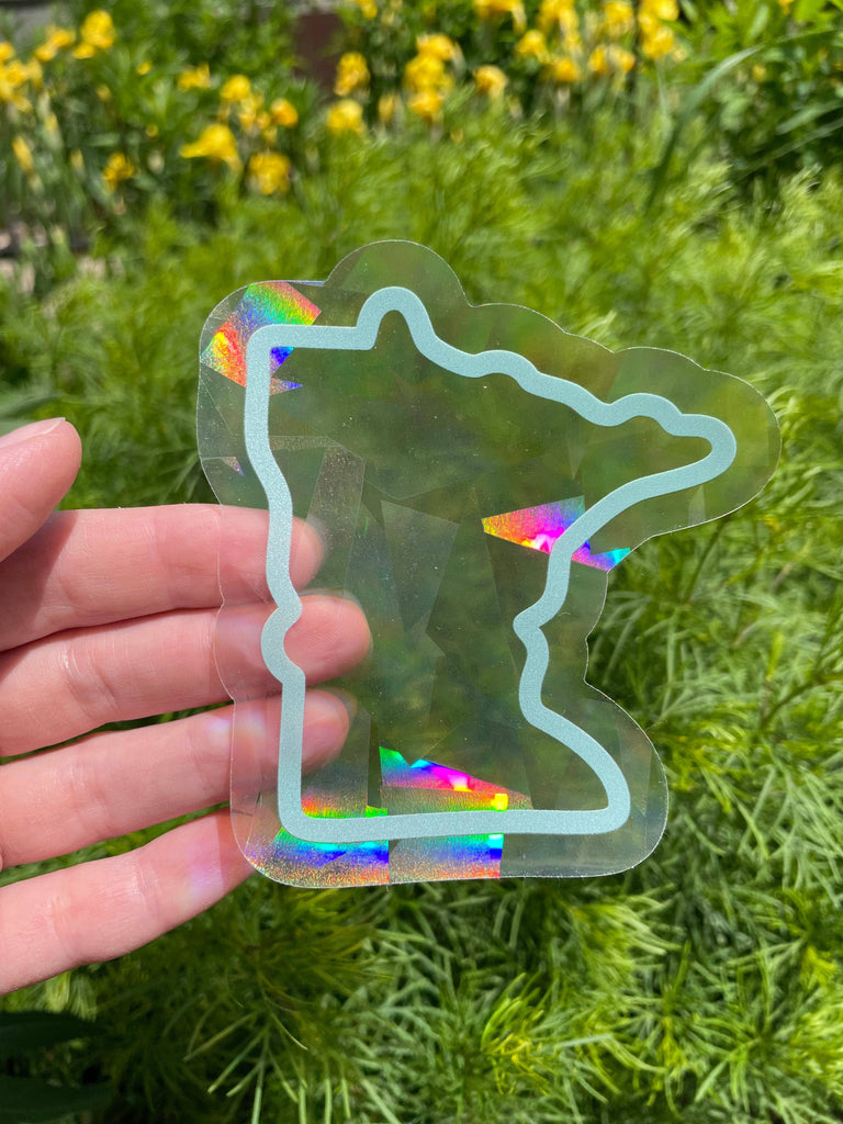 Minnesota proud! This is the perfect gift for someone who loves Minnesota, and it will shine rainbows all over their room to remind them every day of you! For best results - place in a window that gets direct sunlight Dimensions: 3.6x4" Packaged on a hangable hard backer card