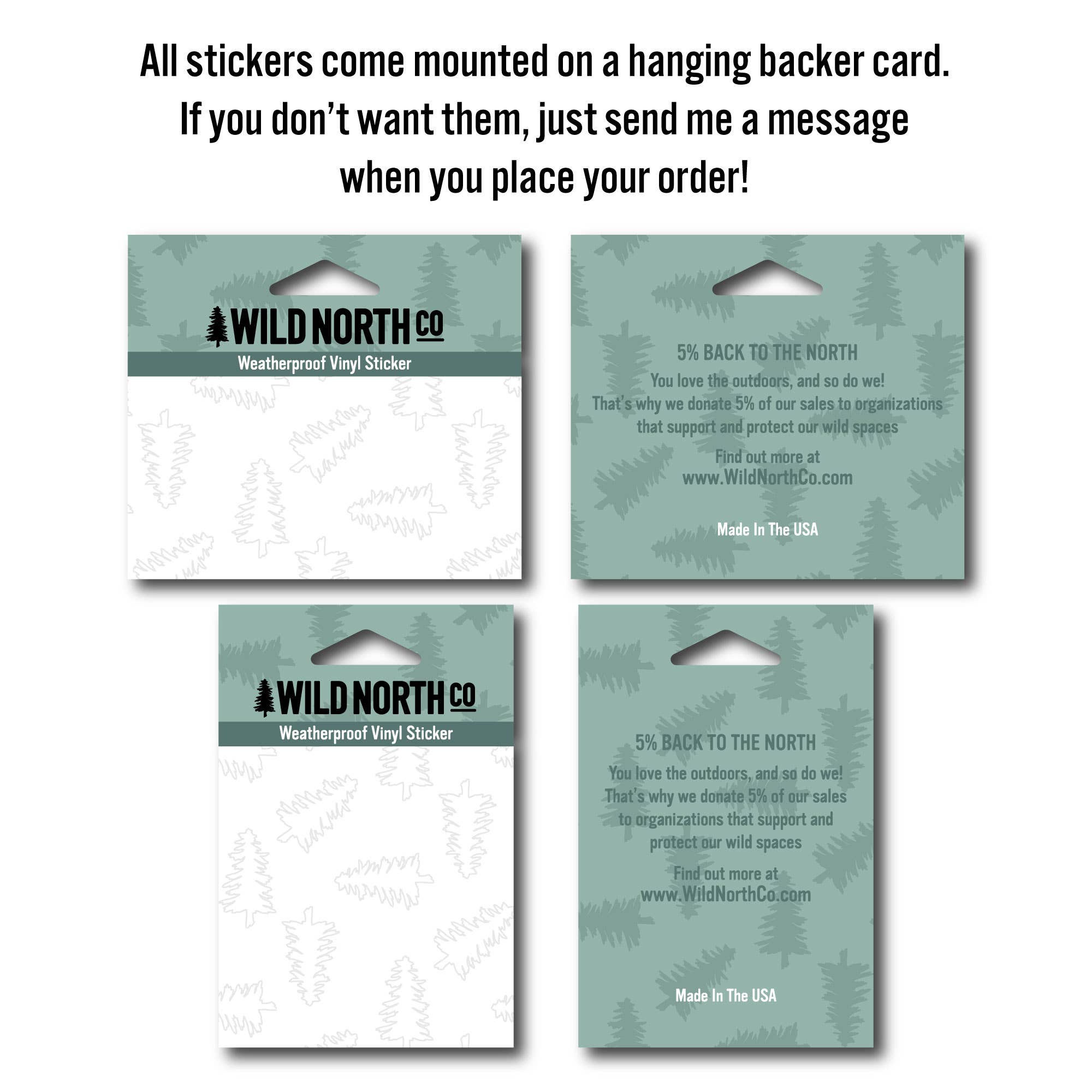 Seeing the northern lights doesn't happen very often, but once you see them, you'll never forget it. There's nothing quite like camping in the northwoods, amongst the trees and stars, and seeing those lights dance across the sky. * Approximately 3x2.6" * Packaged on a hangable hard backer card * Matte protective coating * Scratch, Water, and Sun resistant * Perfect for water bottles, laptops, cars, it's even dishwasher safe!