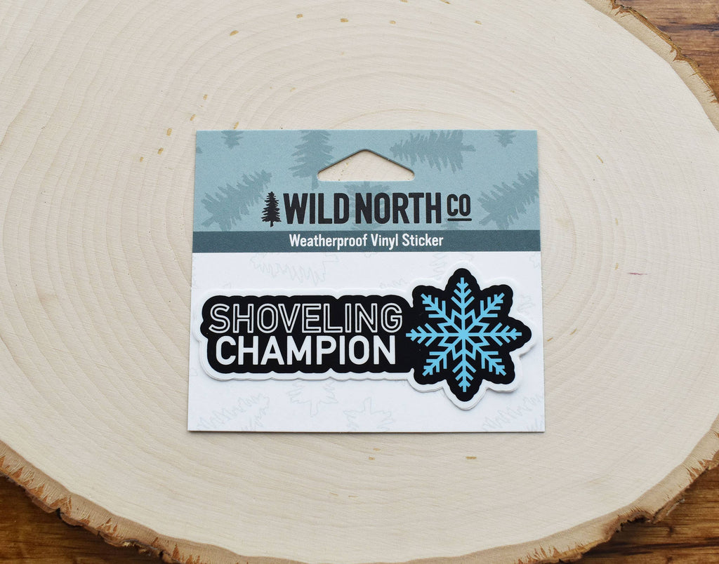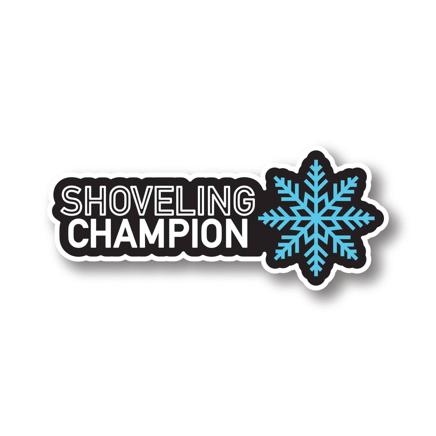 Don't let anyone question who you are. You are - the shoveling champion! * Approximately 4x1.6" * Packaged on a hangable hard backer card * Matte protective coating * Scratch, Water, and Sun resistant * Perfect for water bottles, laptops, cars, it's even dishwasher safe!