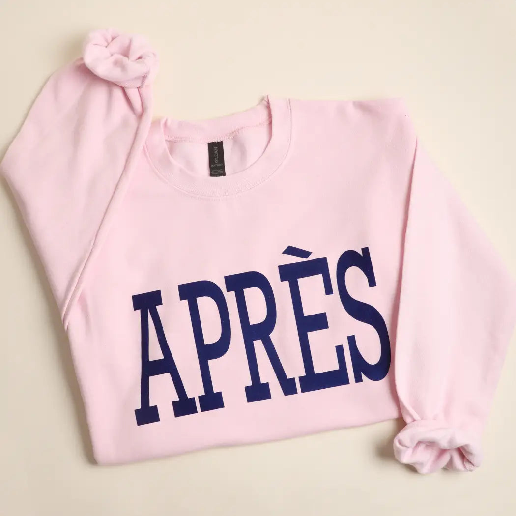 Pretty in pink with elevated navy letters that feel like suede! Style and comfort after a day on the slopes.